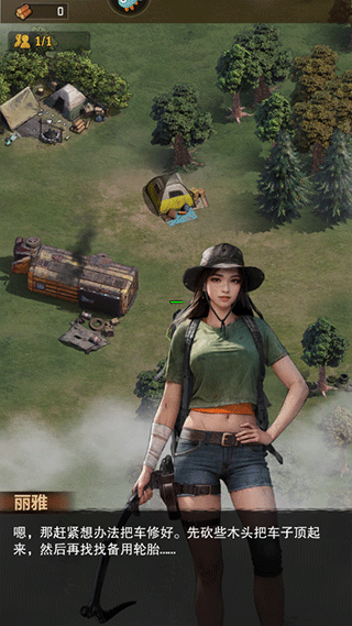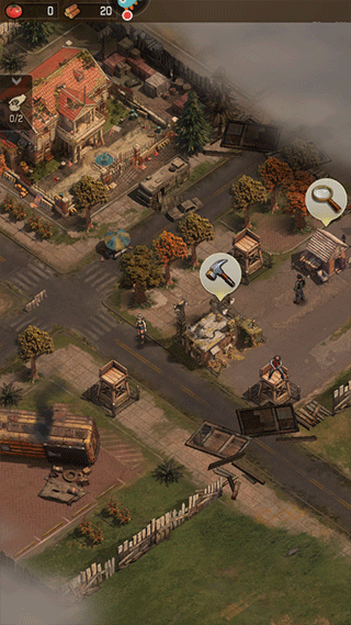5、抵达希望镇后,在地图上点击树木开展伐木作业,点击废弃建筑进行修缮工作,还可以探索垃圾堆来获取各类资源。