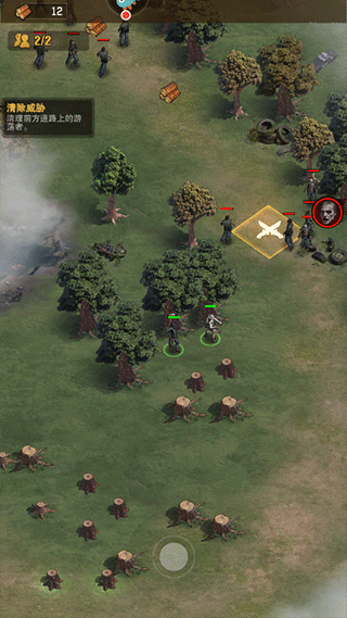 完成新手教程后,通过界面下方的按钮操控角色,战胜丧尸并完成伐木之类的任务。