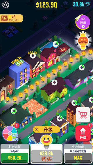 2、升级城市的建筑容量,解锁更多灯泡小人加入冒险。