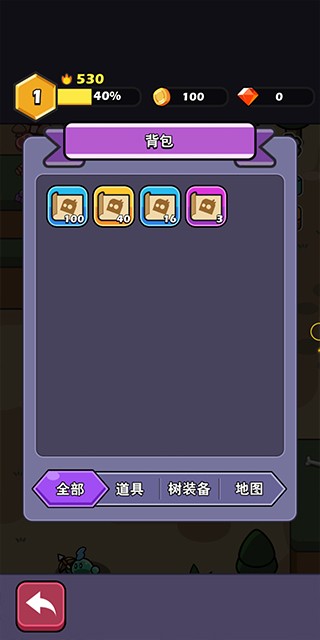 5、兔豆冒险还配备了多样的道具、装备树,以及多类地图供玩家自由挑选。