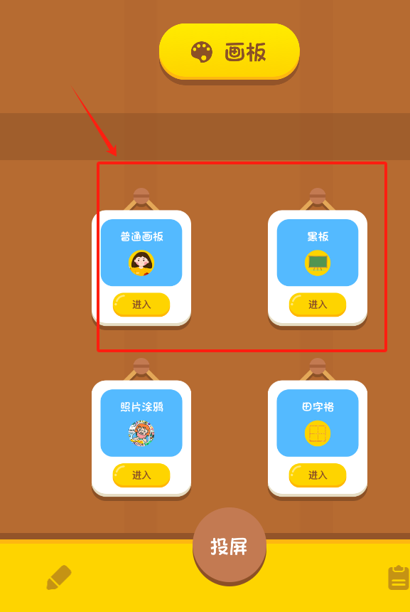 1、点击黄色的画板按钮,或者选择左上角的普通画板框,即可进入基础绘画界面开始涂色。