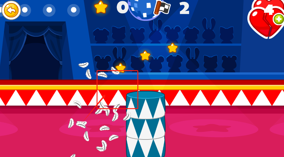 3、点击那个飘着羽毛的蓝色桶,收集星星来获取分数,要注意别让心形的血条消耗殆尽。