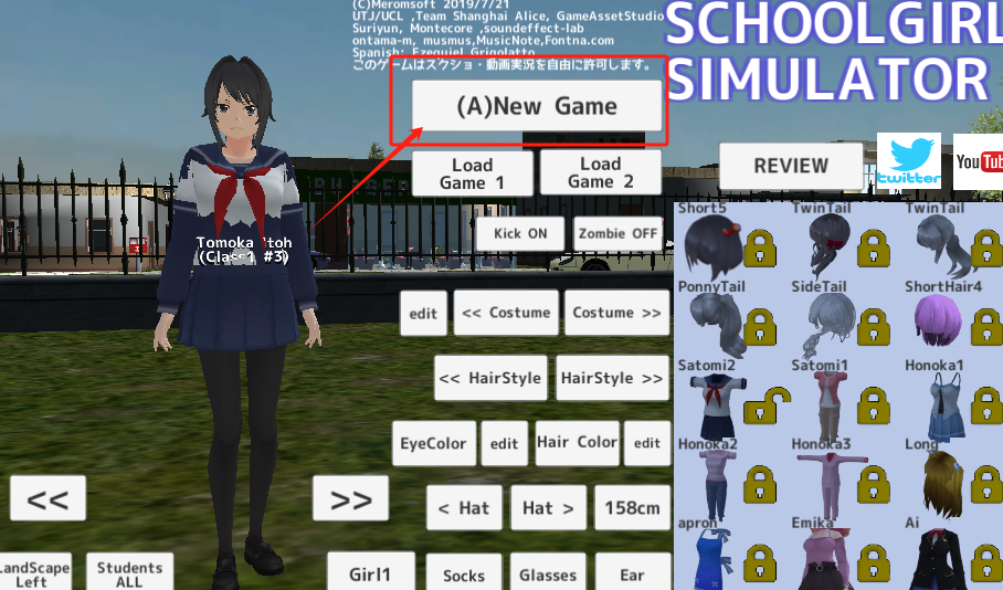 1、点New Game开始新游戏,右边能换发型衣服,下面有制作组信息。
