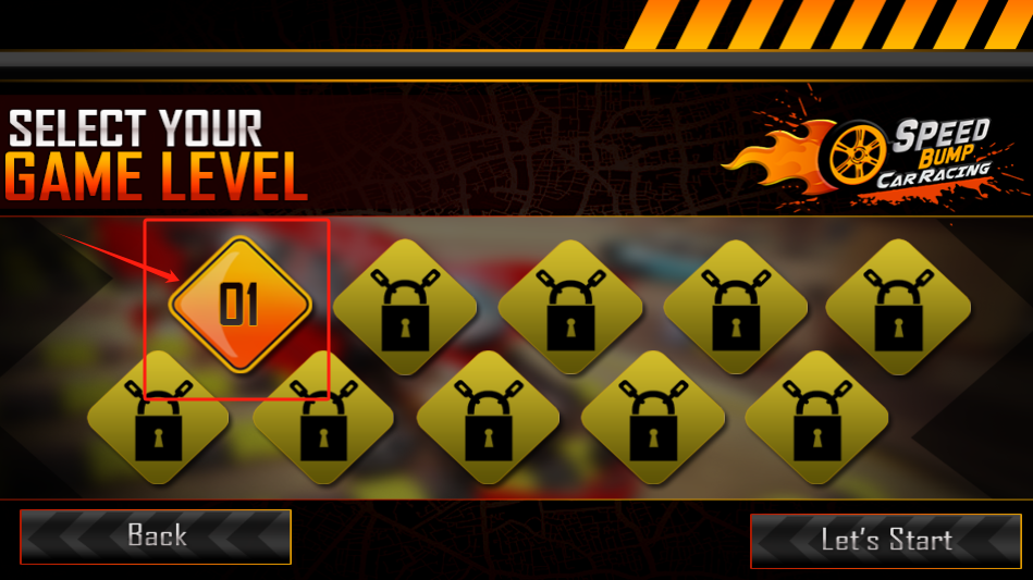 1、点击红框内的01关卡,然后点击“Lets Start”开始游戏。