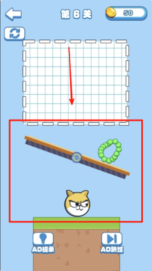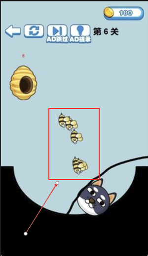 2、屏幕中间为画线区域,玩家需通过划线帮助小狗脱离危险。