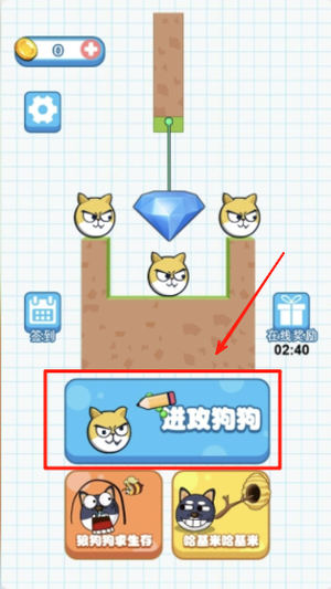 开始游戏后,你可以挑选不同的狗头角色与关卡难度,点击进入地图界面即可开启挑战。