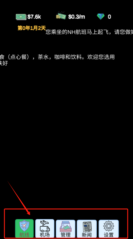 2、点击航线按钮,查看航班信息,为NH航班的起飞做准备。