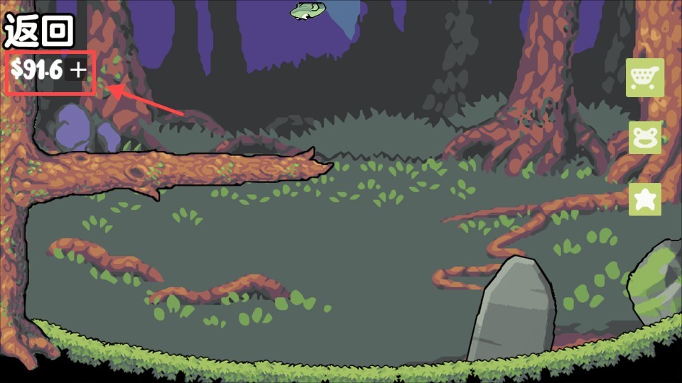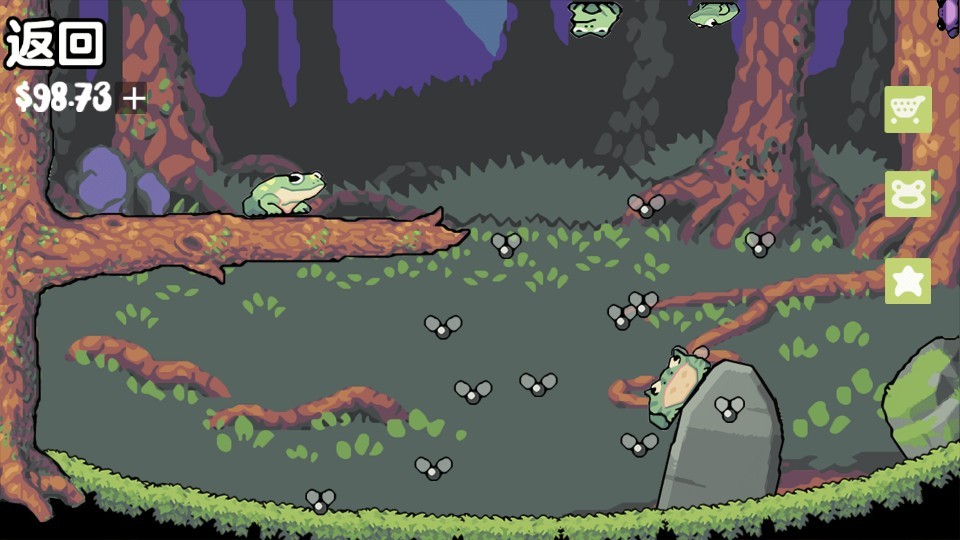 7、操控青蛙捕捉金色苍蝇,吃掉它们能获得更多的经验和钱。
