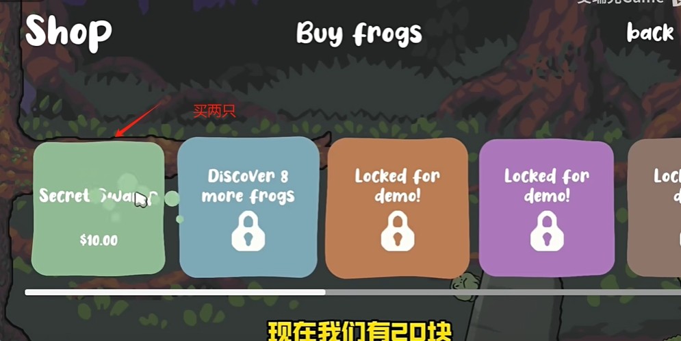 1、由于玩家在游戏开始时,只有10块钱,所以只能购买一只普通青蛙。