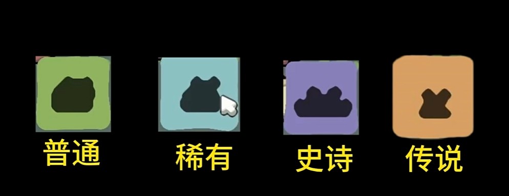 3、青蛙有四种不同的等级:绿色普通、蓝色稀有、紫色史诗和黄色传说。