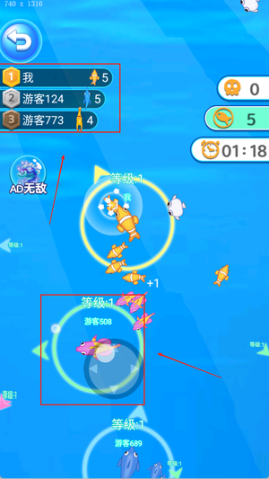 2、吞噬比自己体型小的生物获得经验值,达到阈值后自动进入下一阶段并解锁新能力。