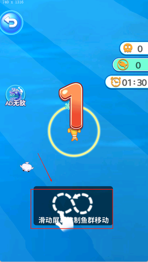 1、控制角色自由移动,通过滑动屏幕调整方向,寻找比自己体型小的生物进行吞噬完成成长任务。