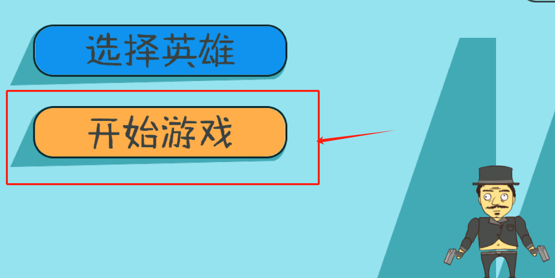 1、蓝色按钮用于选择英雄切换角色,标红的橙色开始游戏按钮,点击即可直接进入游戏。