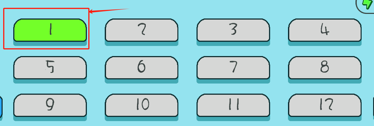 2、绿色的数字1按钮处于亮起且被框选的状态,按下它大概率是用于确认操作或者进入下一关,其余的灰色按钮目前暂时无法使用。