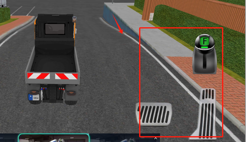 3、看到车尾F标识旁边的踏板了吗?用手指按住它,卡车就会顺着指示的方向移动。