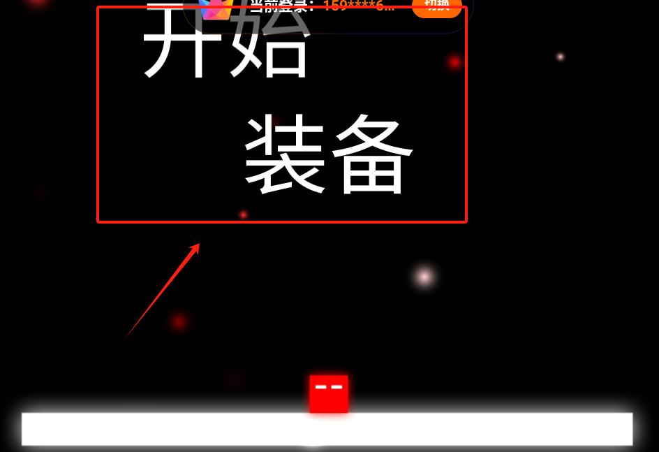 1、点红框里的开始或装备按钮,就能进入游戏或更换道具,账号信息在上方显示。