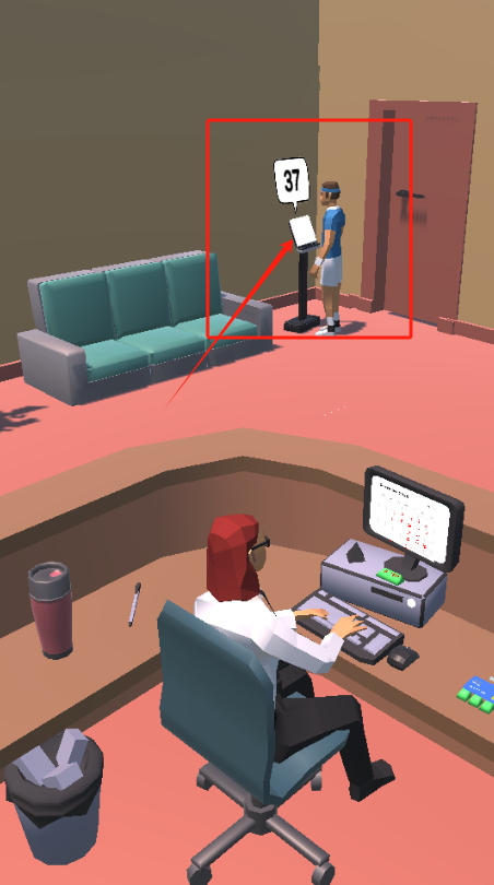 2、让坐着的人继续工作,点37号设备去修那个机器。