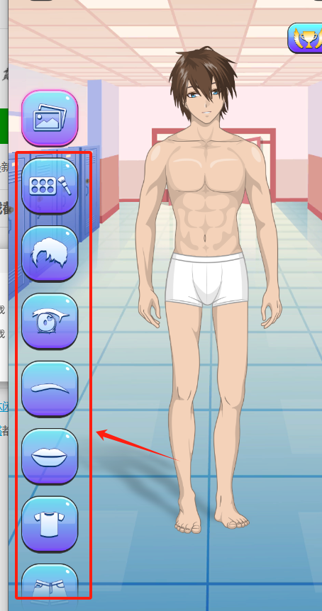 1、红框里挑装扮按钮,从上往下试,选好造型,右上角奖杯可能是成就奖励哦。