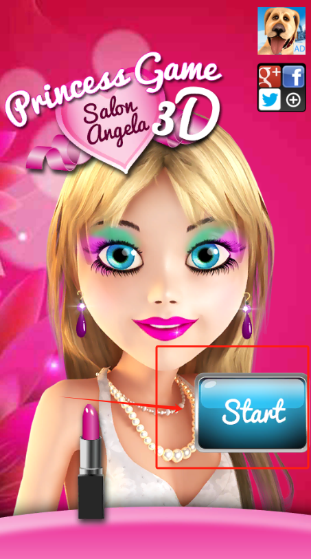 1、点击界面右下角的蓝色Start按钮以启动游戏,为金发公主进行化妆和装扮。