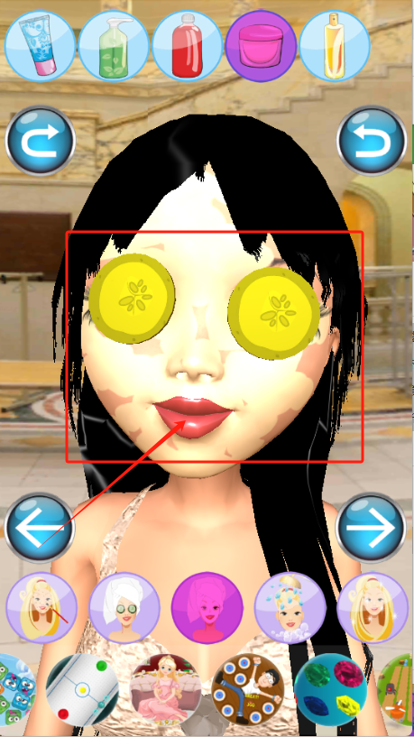 3、点击女孩脸上的黄瓜片眼膜将其取下,然后选择下方的头像来更换新造型。