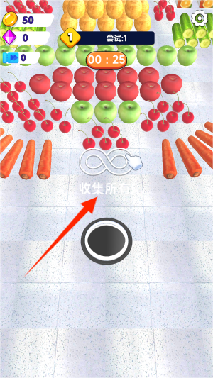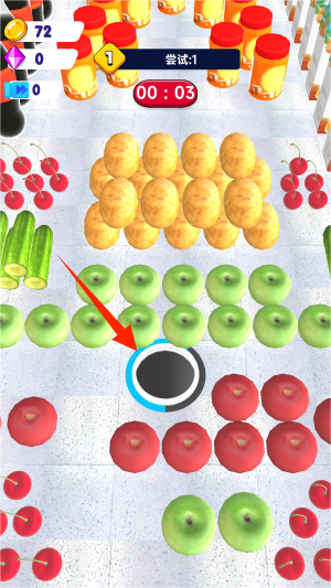 画面中央会浮现出一个神秘漩涡,周边散落着各类新鲜的果蔬,你可以通过手指左右滑动来操控漩涡的移动路线。