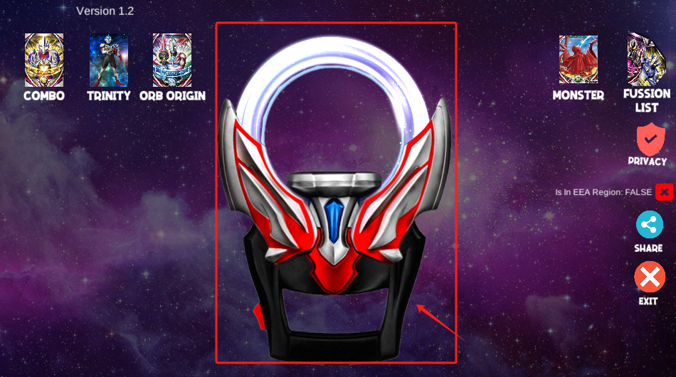 1、点击中间红框内的变身器即可开始游戏,左侧可选择形态,右侧能查看怪兽图鉴。