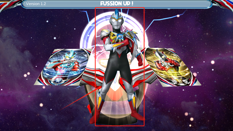 3、当看到FUSION UP提示时,点击两侧的卡片,即可完成奥特曼的融合升级。