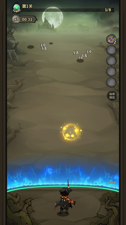 1、进入超强口径后,角色将自动进行防御攻击,你只需要合理选择法术和伙伴,调整防守策略,就能轻松应对不同的怪物波次。