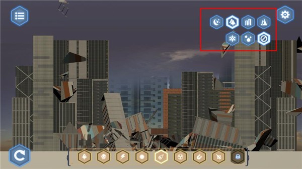 3、每个怪物都拥有独特的技能,点击技能按钮,释放各种强力特效,让城市瞬间化为废墟。