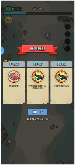 3、战斗过程中会获得技能选择机会,建议根据敌人类型与战场局势,优先选择范围攻击或控制类技能,以提高清怪效率。