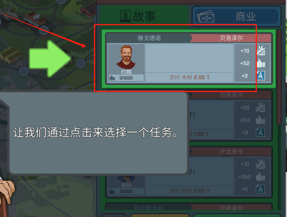 3、选约翰发布的木材任务,点击任务框接单,按提示运货到贝洛泽尔。