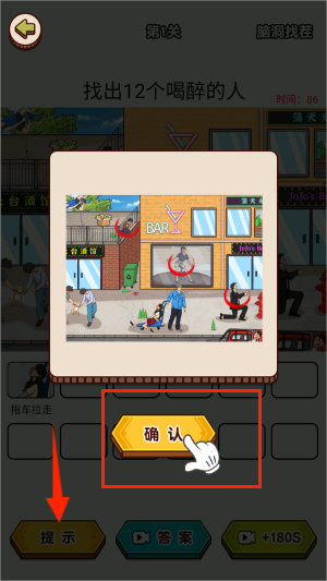 2、关卡开始后,仔细观察场景中的人物状态,成功找出全部12名醉酒目标即可通关。