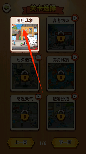 1、启动游戏后,在模式选择界面点击"酒后乱象"选项,即可开启特殊闯关玩法。