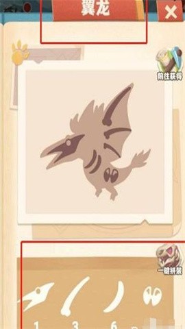 1、在主界面点击提示按钮,进入合成界面,查看翼龙的合成配方。