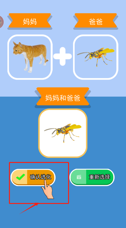 3、确认黄黑蜂的进化组合后,点左边带对勾的确认进化按钮。