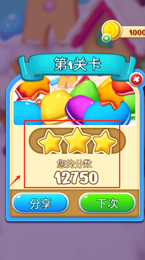 3、把12750分的成绩截屏保存下来,之后可以选择点击分享按钮去炫耀一番,或者留到下次继续挑战更高分数。