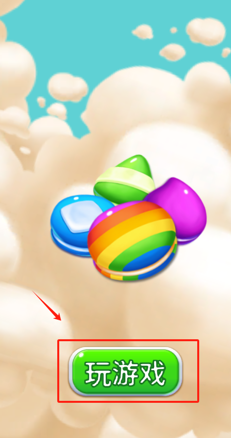 1、点击带有绿色边框的“玩游戏”按钮,即可进入色彩缤纷的糖果消除游戏。