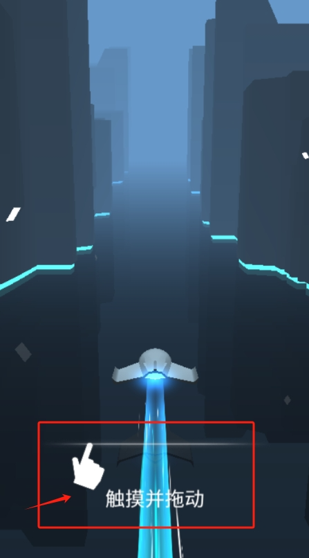 1、按住发光飞行器拖动,控制它在城市里飞行。