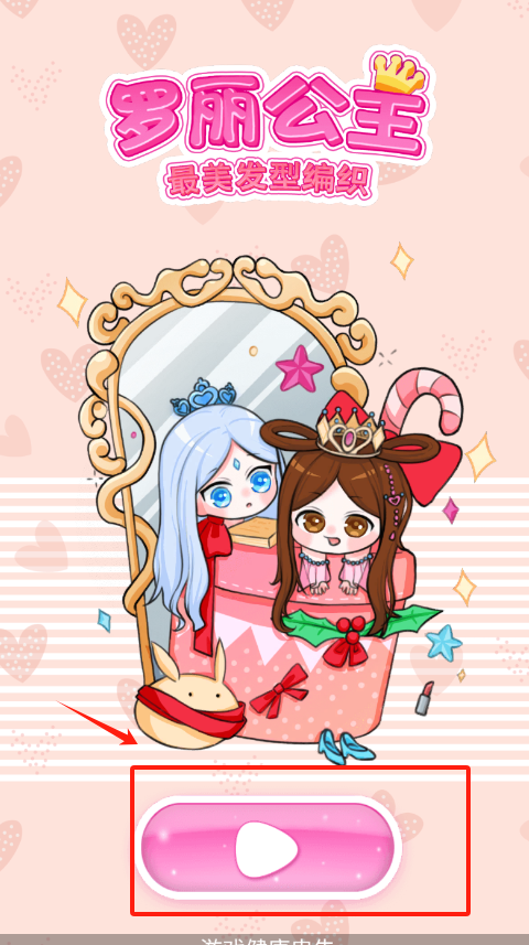 1、点击粉色的播放按钮,就能开始为蓝发女孩和棕发女孩编织漂亮的发型了。