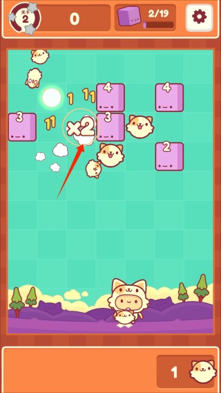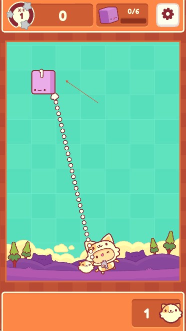 3、玩家需用手指滑动屏幕,把瞄准线移至方块所在方向,接着顺着该方向向上推动瞄准线,发射皮皮球将其打碎就可以了。