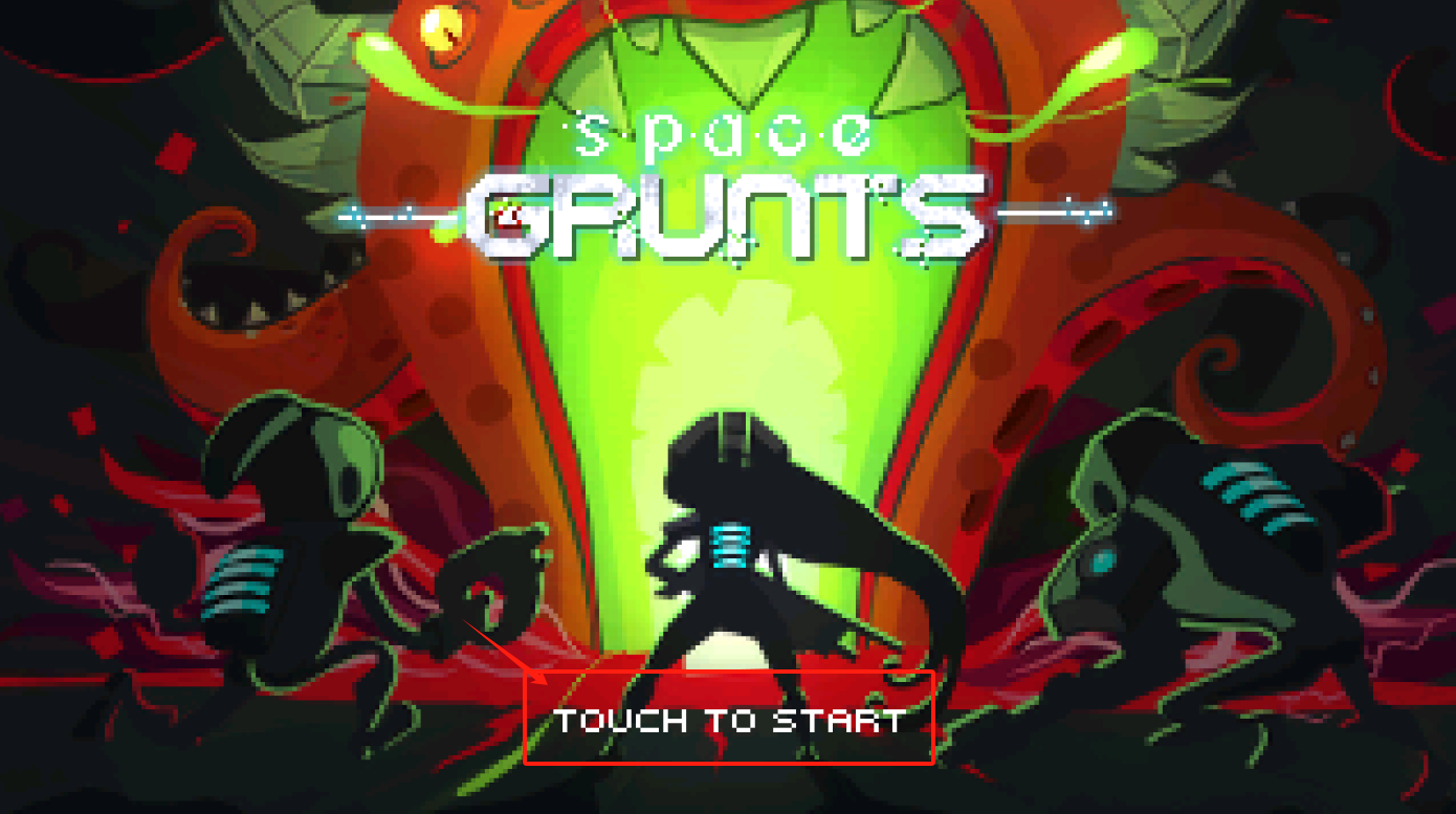 1、点中间TOUCH TO START开始游戏,左右两个角色是可选人物,背景很科幻。