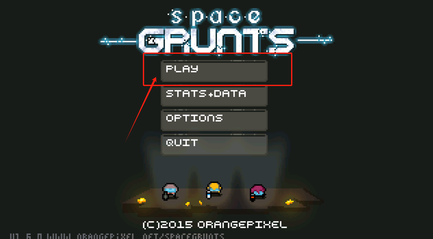 2、选第一个PLAY开始游戏,其他选项可以看数据或设置,最底下是制作组信息。