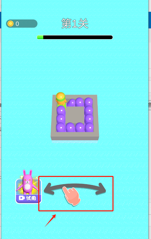 1、点击中间红框内的开始游戏按钮,进入第一关,先用兔子尝试体验玩法。