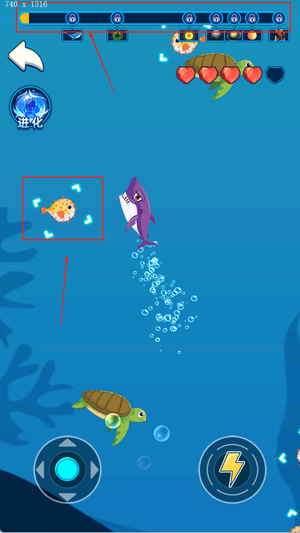 2、左侧为移动操控区域,通过滑动屏幕可调整游动方向;右侧设有技能与加速按钮,便于玩家随时操作使用。