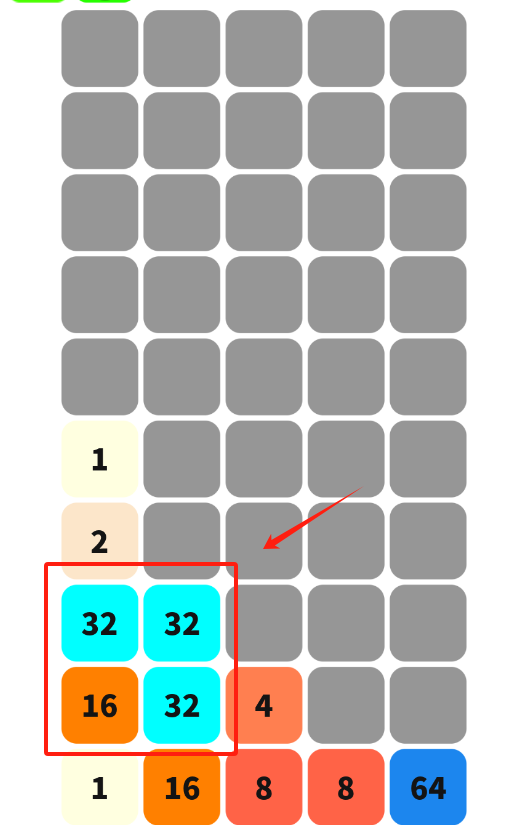 2、瞅见右下角那俩蓝色32方块把它们拖到上方灰色空格消除得分就行啦。