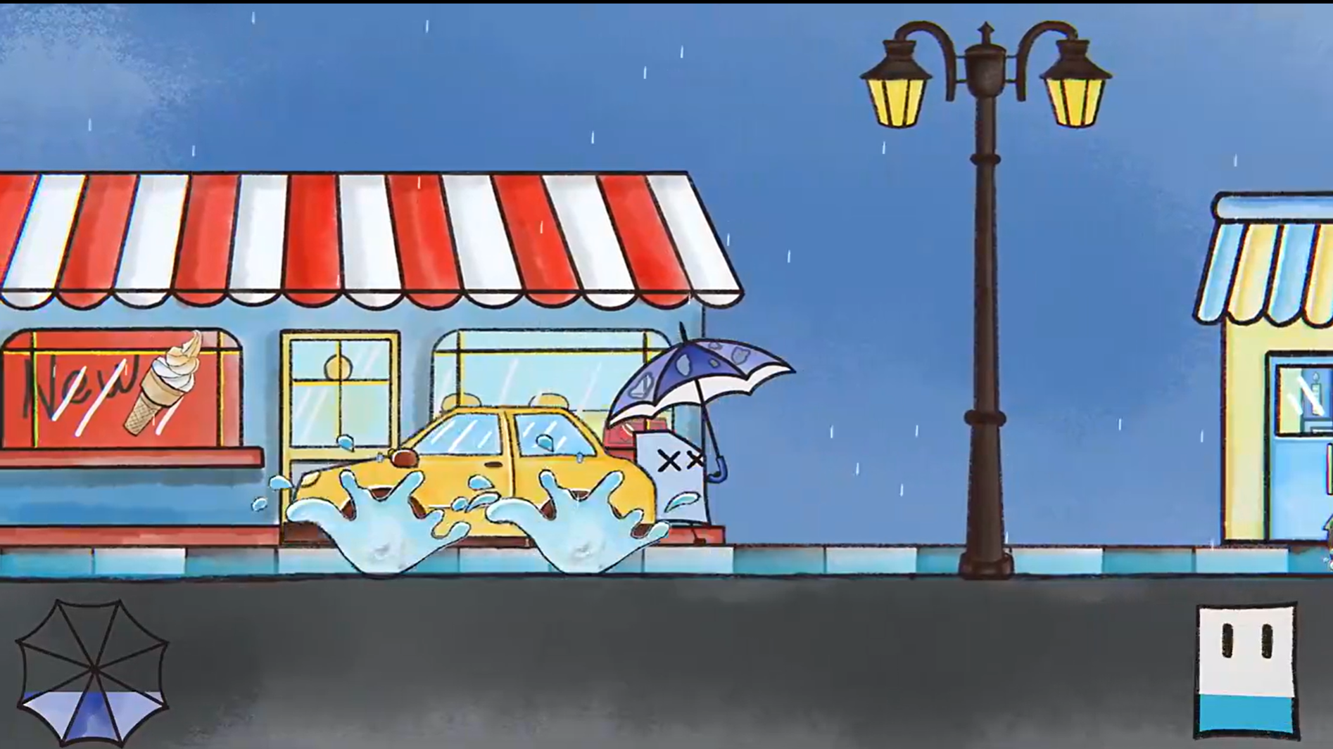 雨天是画风清新独特的休闲小游戏,采用简约手绘风格,营造出一个常年阴雨的小镇氛围。雨天玩家将操作一张拟人化的纸片,在淅沥不断的雨中穿梭,躲避飞溅而来的水花与障碍物,只为顺利回到温暖的家。雨天游戏整个过程没有复杂操作,却充满诗意与节奏感。雨天游戏虽然流程不长,但在有限的时间内通过雨伞的使用与路线判断,展现出对环境与节奏的巧妙把控。
