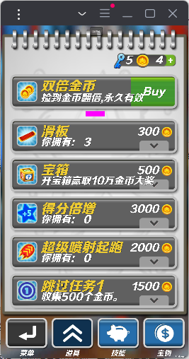 4.目前游戏的操作简单易懂,玩家可以合理运用加速、无敌、双倍金币等各类道具来展开冒险。
