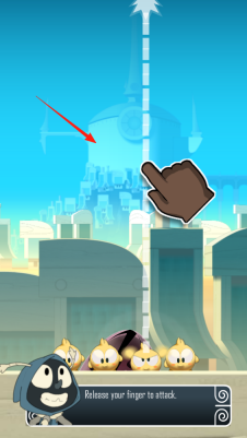 2进入关卡后,你会看到角色、小鸡,以及竖线和手指提示。操作时按住屏幕,顺着竖线方向蓄力,松开手指即可发射攻击,将小鸡向前推送,以此挑战前方的障碍,看看能否顺利通关。