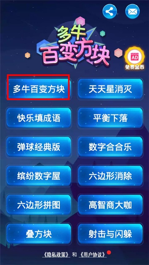 这款名为“多牛百变方块”的游戏属于经典的方块填充消除类益智游戏。它凭借独特的玩法设计和精致的画面呈现,为玩家打造了沉浸式的游戏乐趣。游戏内设置了丰富的关卡体系,每个关卡都包含着不同的挑战目标与难度梯度,使得玩家在进行方块消除操作时,能够持续突破自身能力边界,逐步提升游戏技巧。