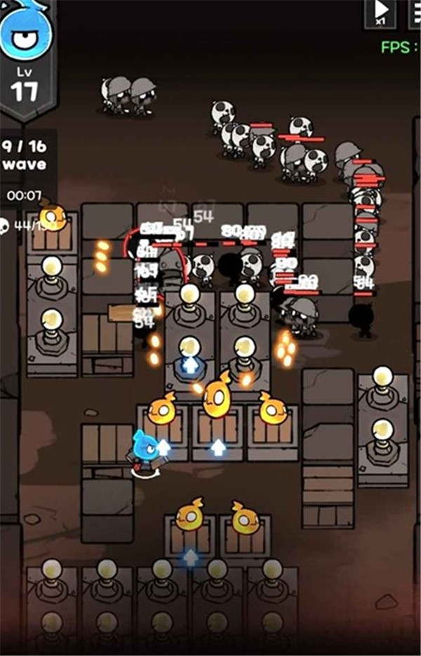 2、合理放置塔防设施与增益效果,抵御各类敌人入侵。